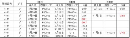 我が家では国産オオクワガタは、大型・極太に拘って飼育していますが、毎年1~2系統だけ、大型を狙って細々と飼育継続している「佐賀県産」がいます。 今年の♂は異化の表のような状況になっています。 毎年、あまり大きいのはでないのですが、今年も上表の…