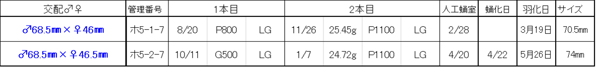 極太系で有名なお二人の方から購入して、2系統でスタートした初めての「ホペイ」。各20頭程の幼虫を取り、それらはほぼ羽化してきました。