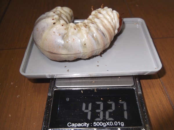 ※これも上記ボトル同様に、オオクワで言う「居食い」のようにあまり動き回らず、1400㏄カワラボトル(自詰)に入れて、約2か月落ち着いて食べてくれました。