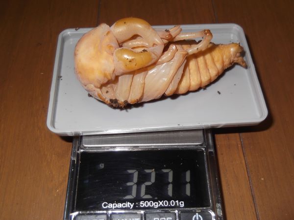 これまでの蛹の体重で、我が家では、「30g」を超えたことはありませんでしたので、初めての30g超えで記録です。