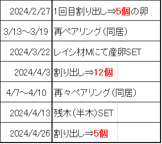 1回目の産卵で、2月27日に5個の卵を取ることが出来てからの続きとなります。